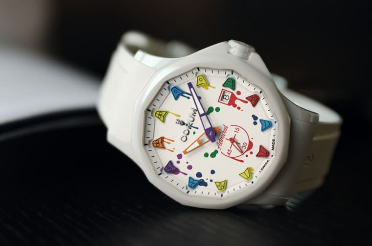 ▲另款白色陶瓷款式于白色面盘融入彩色泼彩设计,同样是向涂鸦艺术致敬。