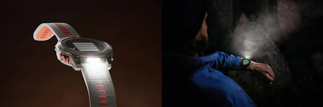 全新LED手电筒,同时具有红色安全灯照明和频闪模式,这样你就不用担心在户外运动时没有光线了。而且它们搭载了全新的第五代心率传感器,并拥有更生动清晰的显示屏,让你在户外运动中能够清楚地看到信息。更重要的是,它们的续航时间非常强劲,新一代显示屏结合太阳能充电面板,始终保持充满能量。当然,它们还具备佳明专业级的体能训练、日常健康和智能功能数据记录。